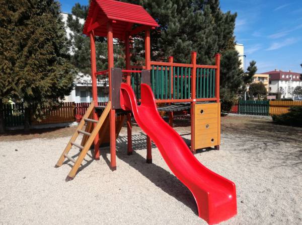 Dětem je k dispozici velká školní zahrada, vybavená dřevěnými průlezkami. Často využíváme i dalších možností, které nám nabízí příroda v okolí MŠ. V případě nepříznivého počasí se mohou děti „dokonale vyřádit“ v blízké tělocvičně ZŠ.